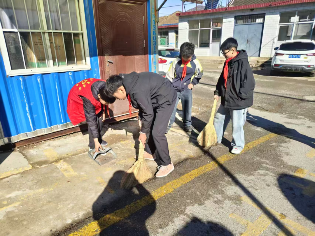 “这边墙角还有小垃圾,看我的!”六年级的田家宝弯下腰,用小手使劲从砖缝里抠出几个烟头。不远处,几个孩子一起挪动一个闲置的集装箱,藏在下面的落叶和碎砖被一点点清扫干净。