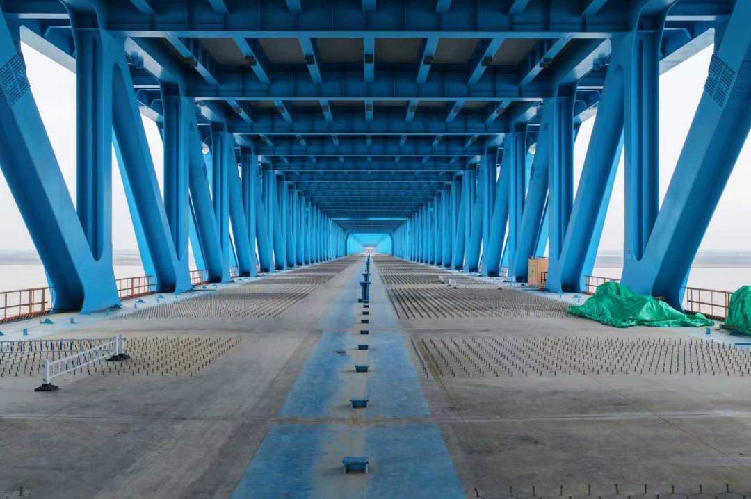 而在大桥下层的铁路路面,钢结构涂装作业也在有条不紊地进行。现场负责人表示,崇启两端相连还剩下5个钢截断的吊装工作,待吊装逐一完成后,上下两层路面施工、大桥斜拉索安装等工作将有序展开。“目前南北两岸的间距大约100米,预计5月可以合龙。”