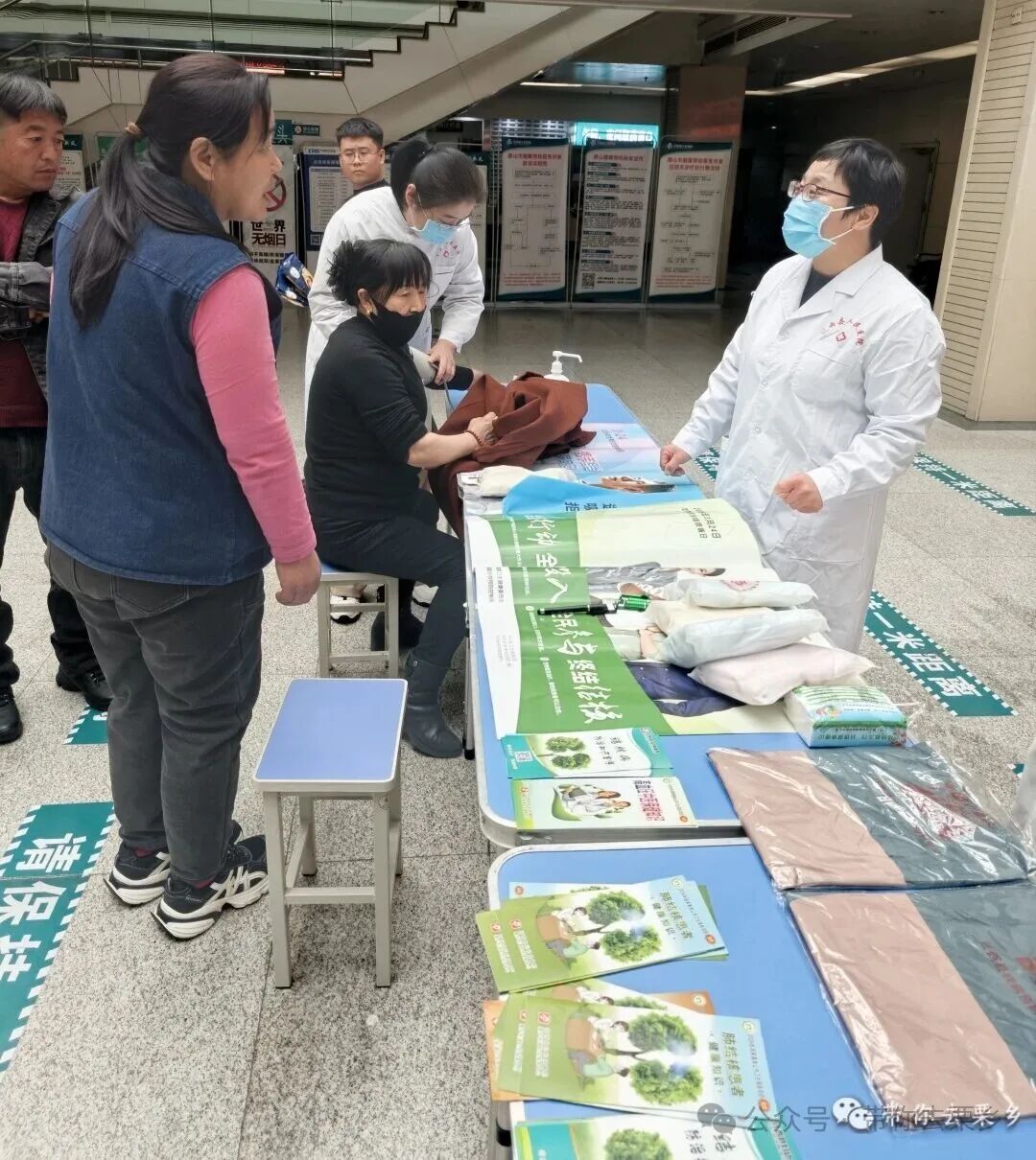 活动现场,工作人员提前搭建宣传咨询台,布置内容丰富的宣传展板,并在公共场所醒目位置张贴宣传海报与条幅,吸引众多过往群众驻足。为提供贴心服务,现场还免费为咨询群众测量血压、血糖,切实将健康服务送至大家身边。