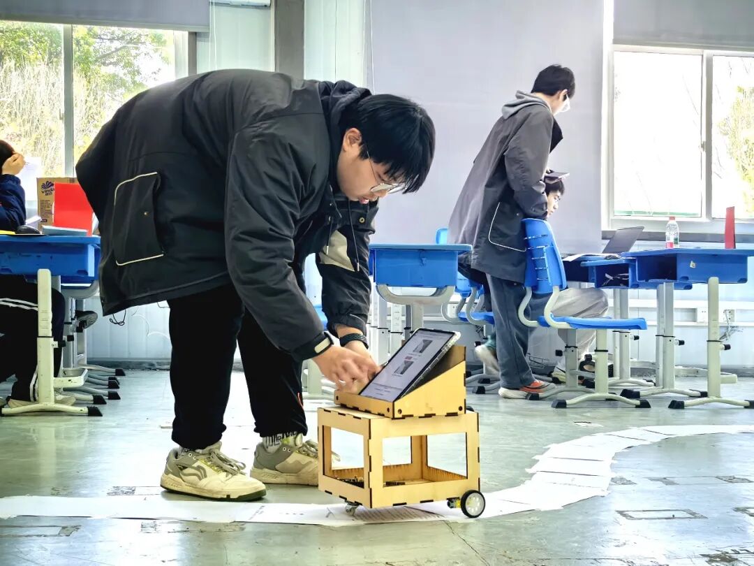 在机器人设计与制作的赛场上,参赛选手们默契协作,动手制作一台基于纯视觉识别的智能小车。室内模拟道路特意设置了直道、弯道、斑马线、桥梁、红绿灯等场景。赛程进行到一半时,各小组陆续进入调试试行阶段。参赛选手钱杨向记者表示,组装完成的智能小车能够自主采集数据、进行模拟训练,“和日常单纯玩编程相比,团队赛更考验队友之间的默契度和配合度”。