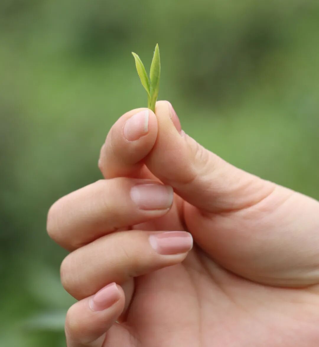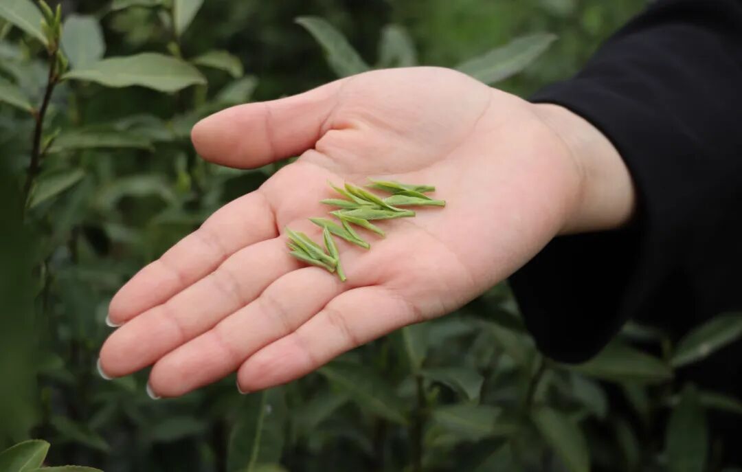 指尖触碰带着晨露的茶芽,