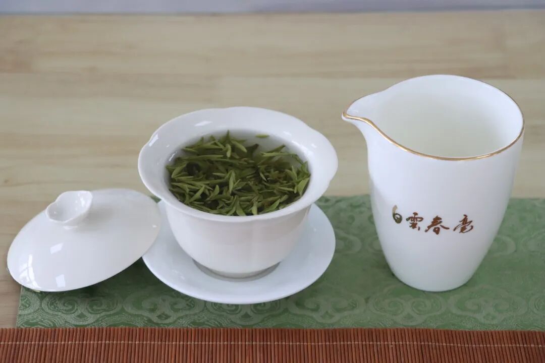 眼下正是明前茶采摘的黄金期,茶农们腰挎竹编茶篮,指尖在鲜嫩茶枝间灵巧翻飞,拇指与食指轻掐茶芽基部,手腕微微用力,一枚饱满的一芽一叶便落入篮中,动作娴熟又轻柔,生怕碰伤这娇贵的春日鲜芽。标准的一芽一叶明前茶,外形挺直、色泽翠绿,是制作白云春毫的上等原料,每一片都凝聚着春日的精华。