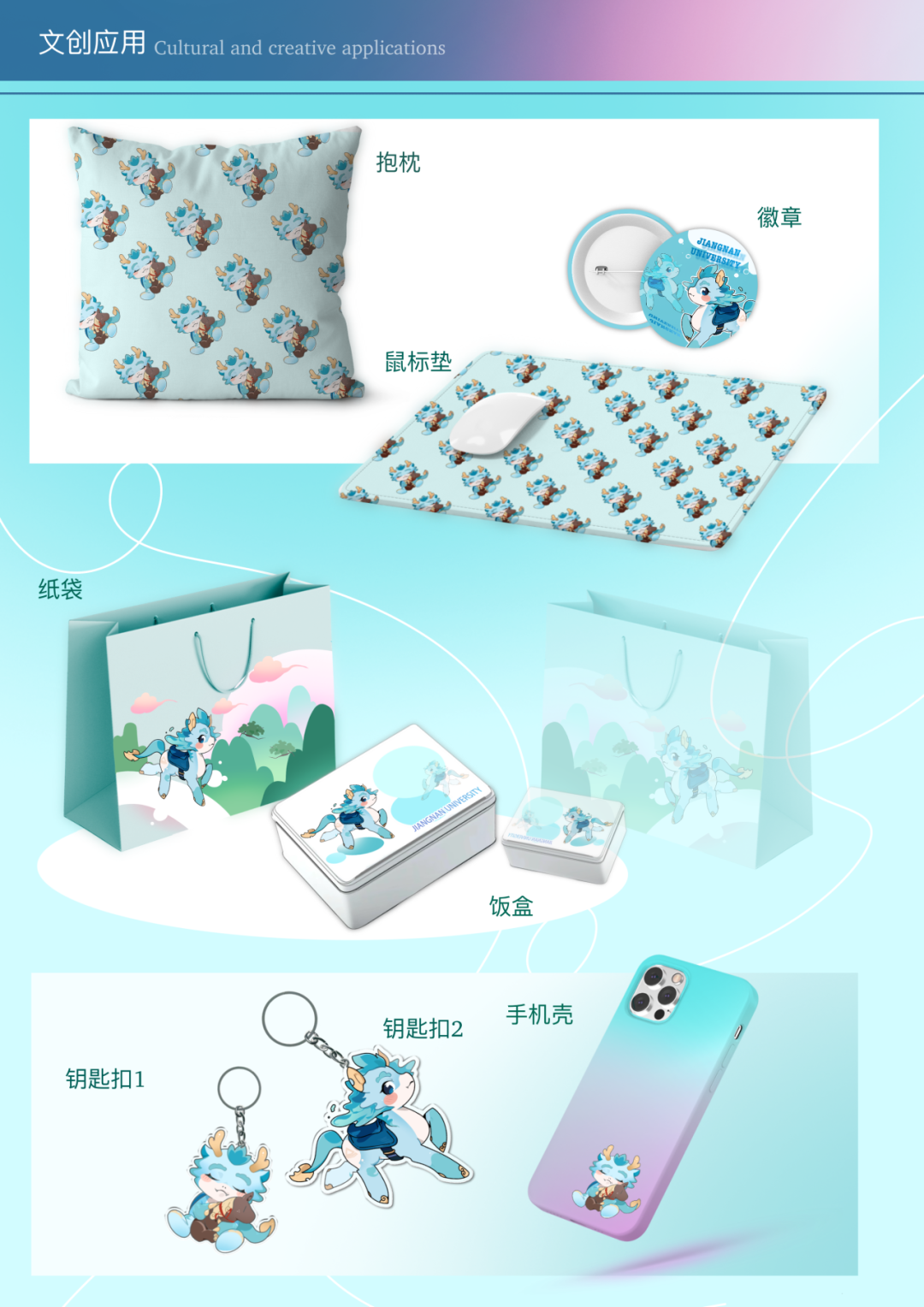 以江南大学吉祥物“小鼋”为核心IP,围绕“校园记忆、青春陪伴、文化传承”展开设计。将小鼋的可爱形象融入帆布袋、毛绒公仔、钥匙扣等实用载体,既保留萌系治愈风格,又兼具日常使用价值,传递温暖积极的校园文化,让学子在生活点滴中感受母校的陪伴。