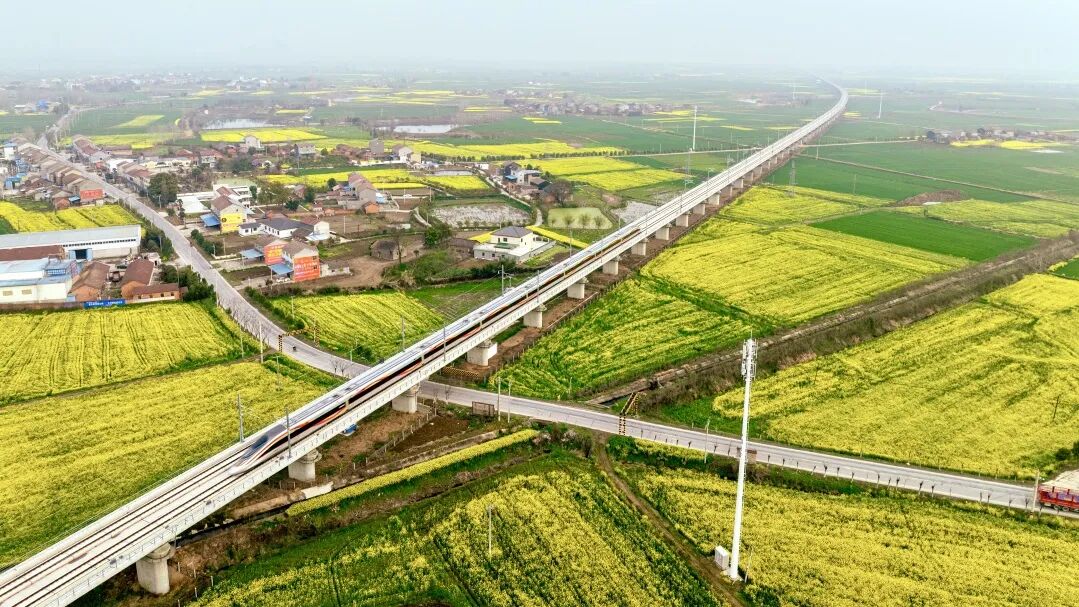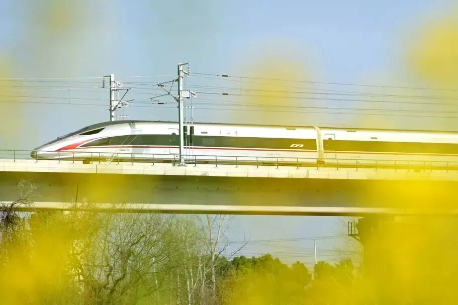 复兴号穿梭花海间,沿江高铁武宜段春日美景引赞叹