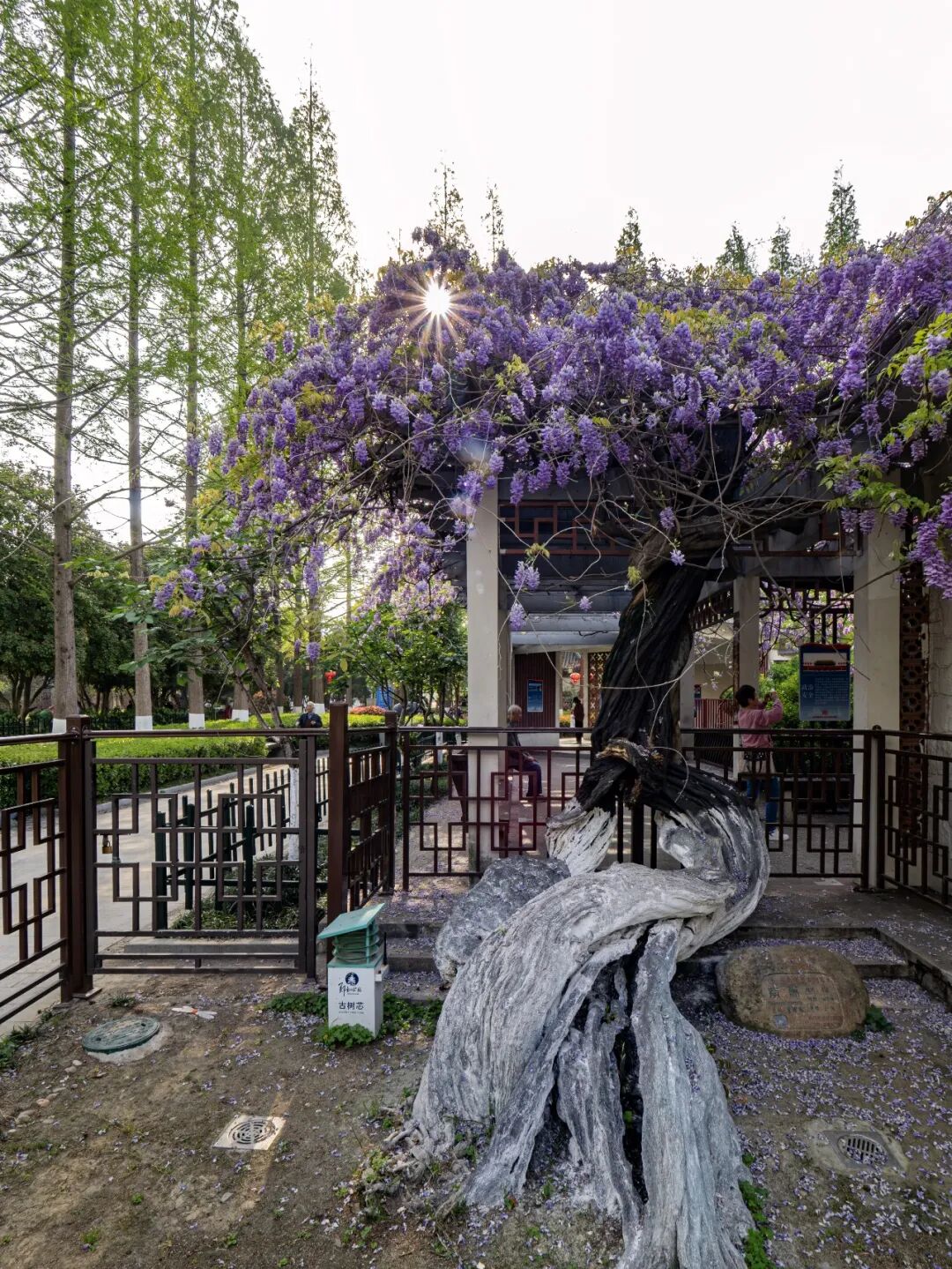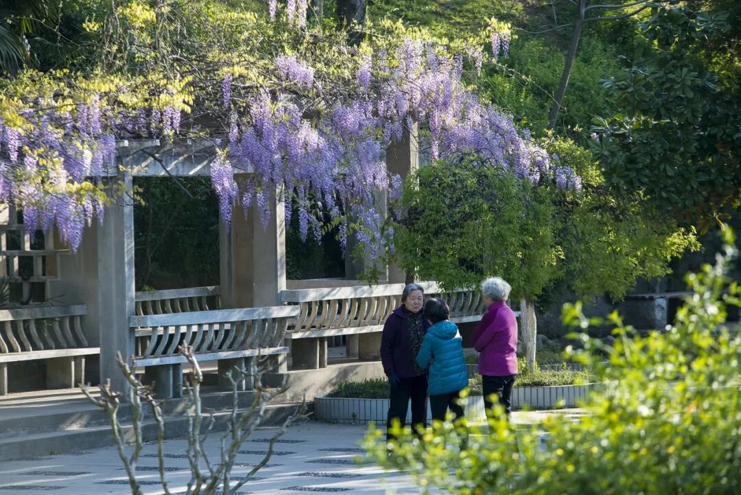 3️⃣古林公园:老紫藤架花开如盖,是市区里的紫藤秘境,满架紫藤如瀑,温柔了整个春天。