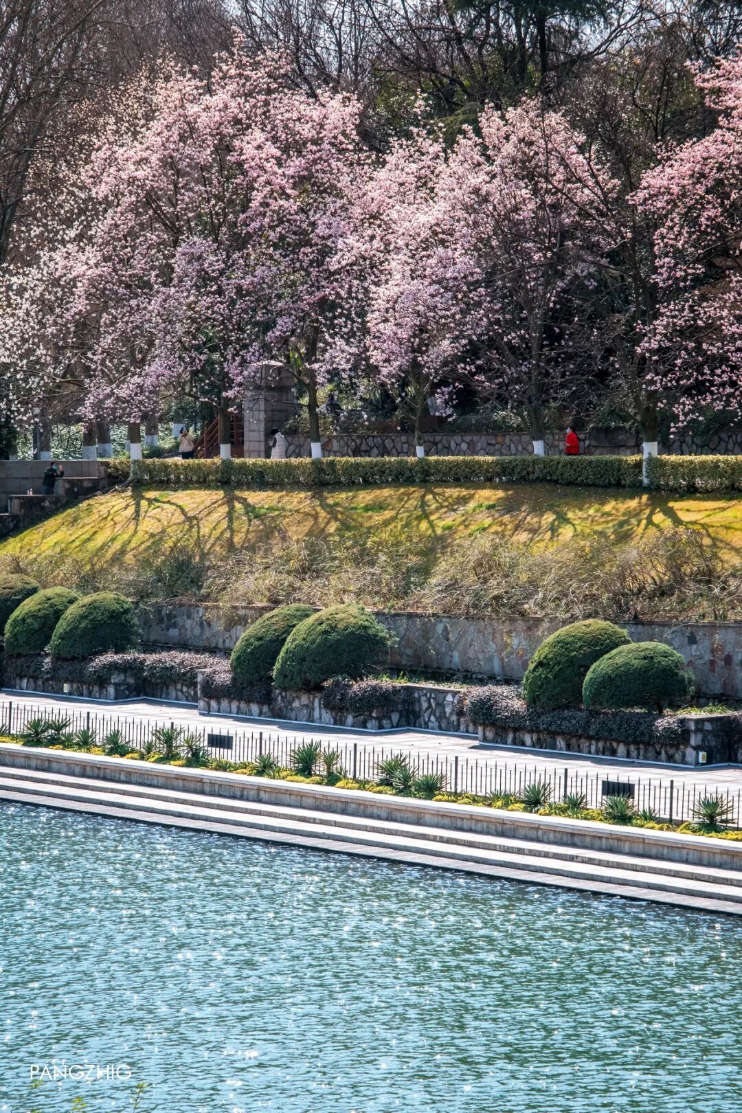4️⃣雨花台:纪念碑倒影池两侧的56株宝华玉兰,象征着56个民族,以“报恩”的花语缅怀英烈——正是他们的付出,让我们能在这片土地上抬头见花、低头寻春。