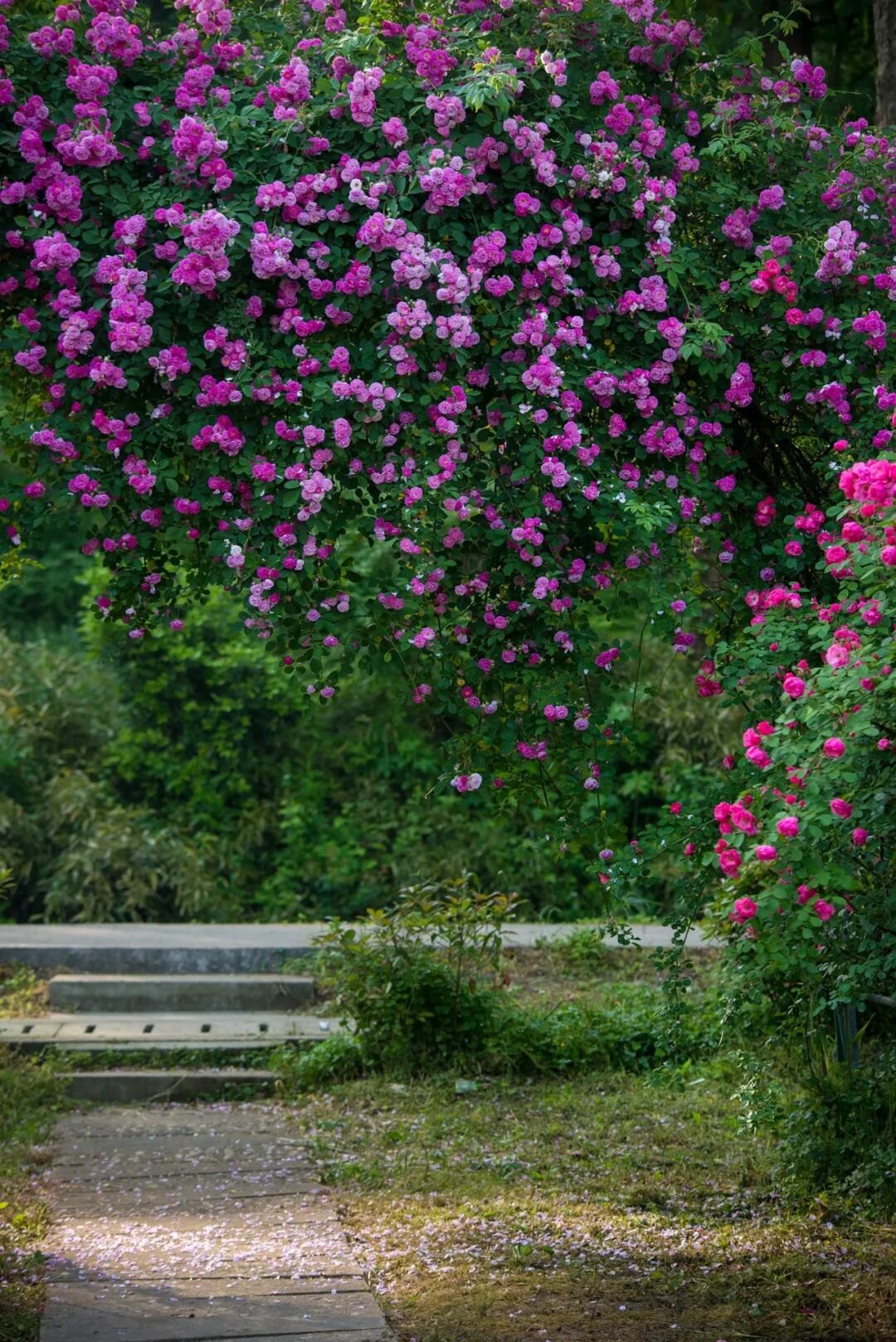 4️⃣中山植物园北园:蔷薇、月季与玫瑰交织成绚丽花海,如莫奈画境般诗意流淌。