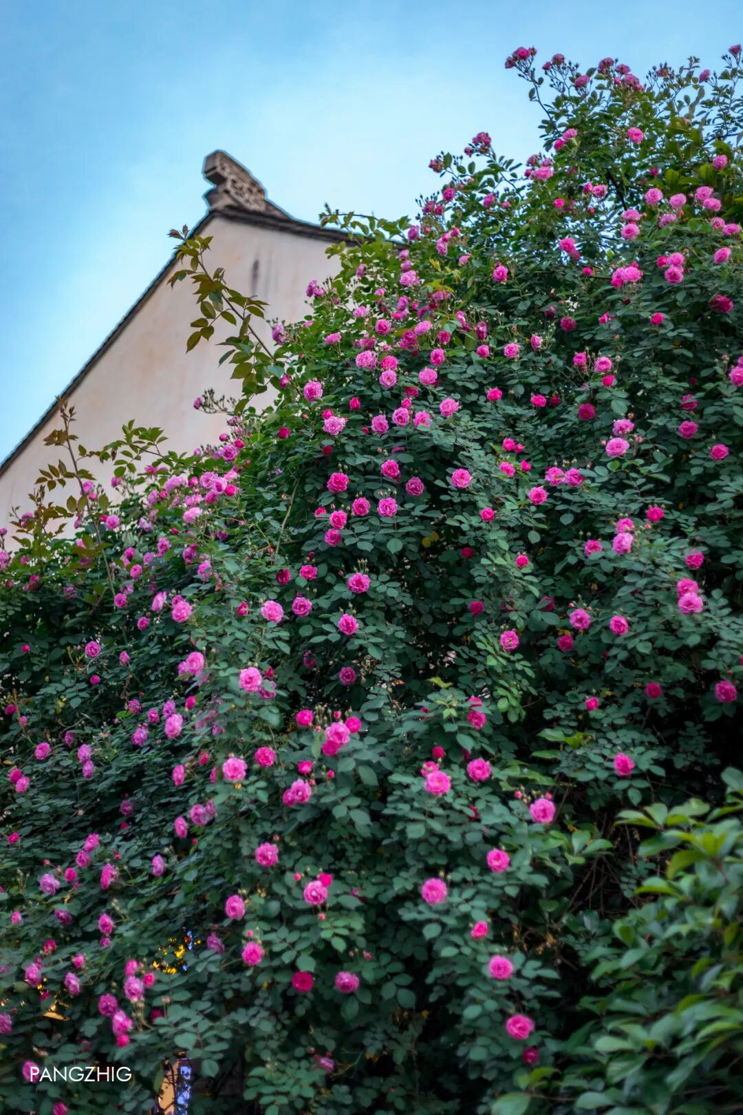 3️⃣老门东:砖墙与蔷薇藤蔓交织,粉红花朵从街巷探出,为古街添了春日生机。