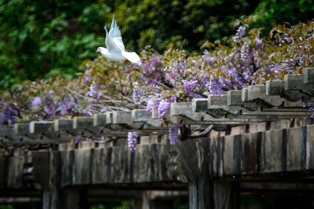 1️⃣老门东:古街巷的青砖淡瓦间,紫藤花如瀑布垂下,满是中式浪漫。