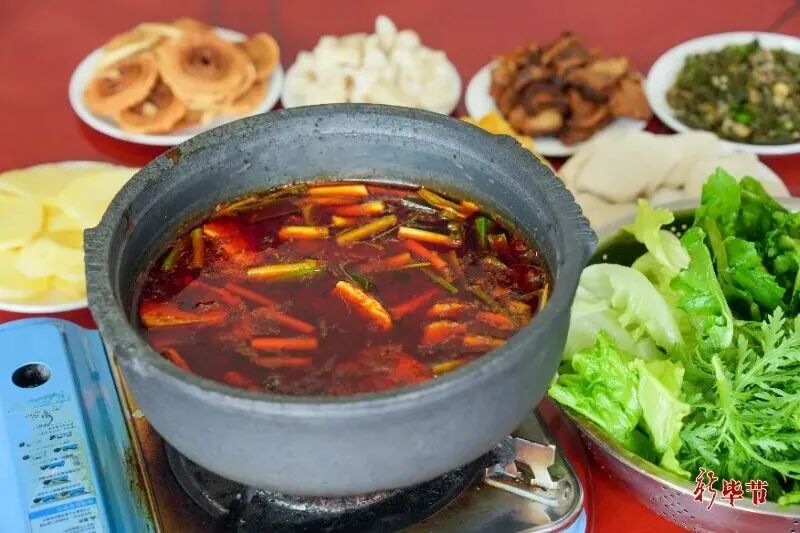 当然,一场完美的旅行怎能少了美食?在毕节,你可以像剧中人一样围炉而坐,吃一顿辣而不燥、滋味浓郁的豆干火锅,锅底翻滚,豆干吸饱汤汁,一口下去满口生香。
