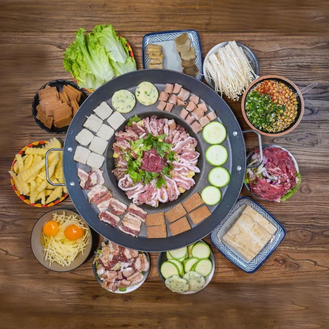 还可以尝尝毕节宵夜的TOP1——“一锅烙天下”的烙锅,食材在铁板上滋滋作响,蘸着辣椒面,这是毕节人深夜最好的慰藉。