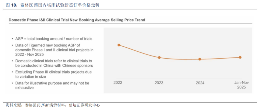 作为行业报价标杆,泰格医药的国内临床试验新签订单价格在2023、2024年连续下行后,2025年1-11月已明显回升。龙头企业价格回暖,预示行业整体订单价格修复具备普遍性,行业有望告别此前价格内卷,进入价值回归阶段。