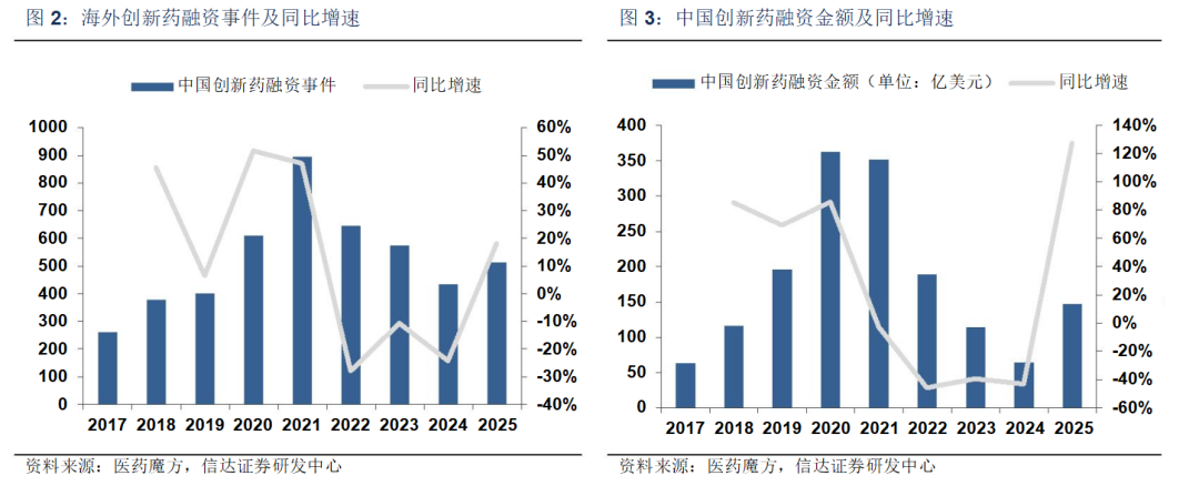 临床CRO的需求核心源于创新药企业的研发投入。2025年国内创新药领域的融资与交易数据,印证了研发端的全面复苏:全年创新药融资金额达146.84亿美元,同比大幅增长127%,其中二级市场融资贡献突出,一级市场也同步回暖,创新药企业的资金储备得到有效补充。