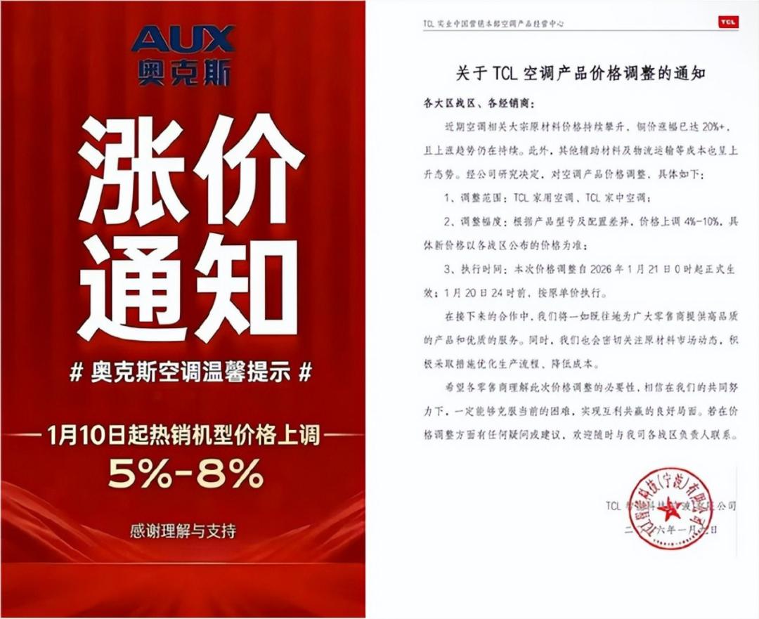 今年以来,原油价格上涨推动化工原料等成本攀升,家电零售价普遍上涨超10%,空调行业自去年12月起就已悄然涨价。不少消费者发现,去年千元级的空调如今涨至两千多元,连以实惠闻名的奥克斯产品也涨价数百元。