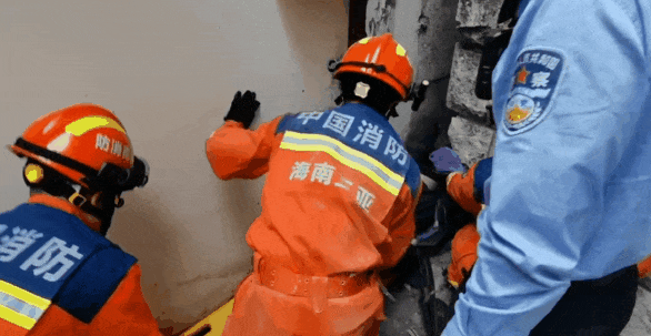 01 海南三亚一名女子醉酒后从三楼坠落,卡在两栋楼的狭窄缝隙中无法动弹,最终被消防员安全救出。