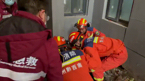 经医护人员初步检查,男子右小腿骨折。救援人员为其腿部固定包扎后,合力将他抬上担架,转移至安全区域并送往医院进一步治疗。