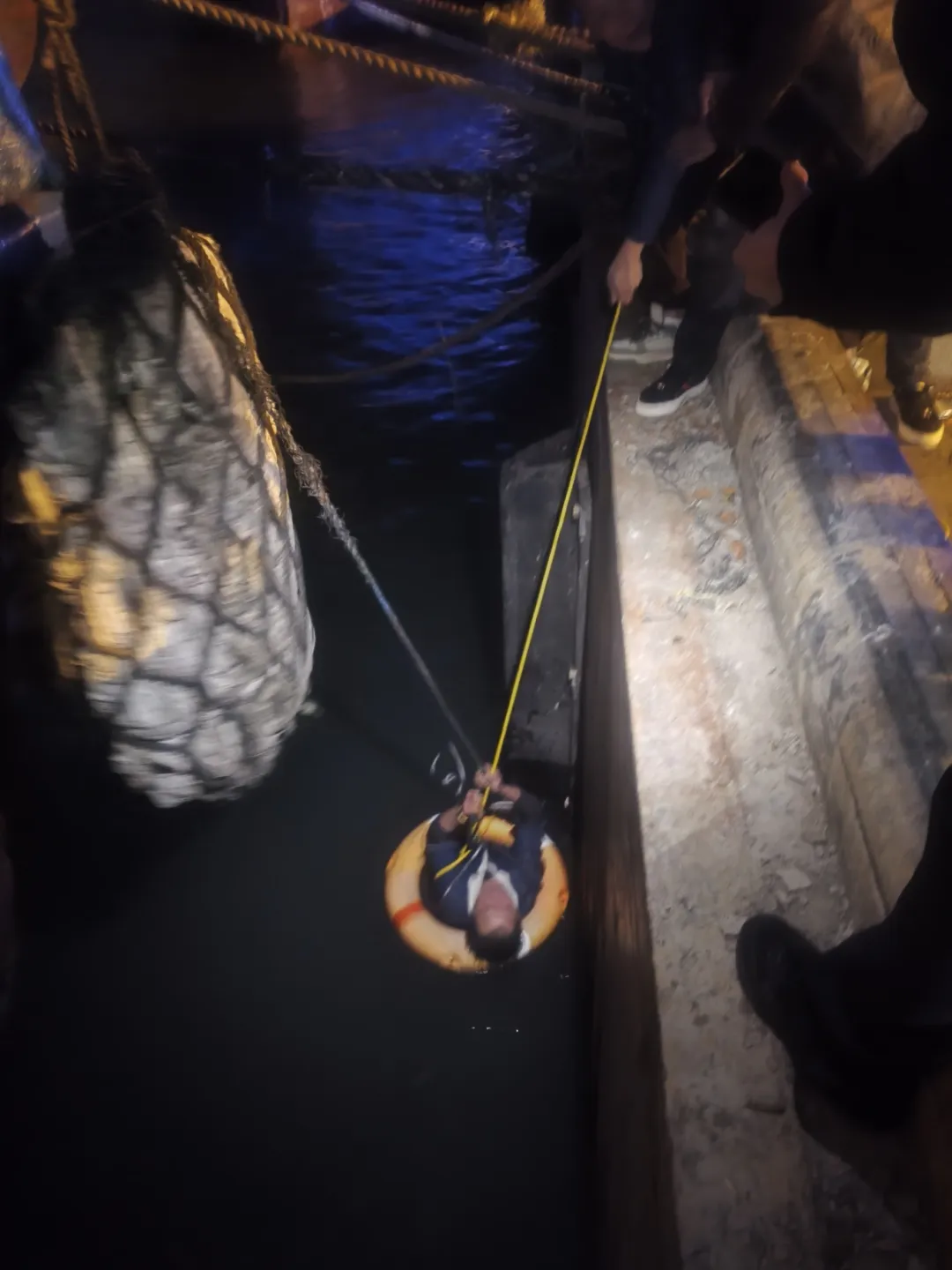 03 福建泉州一名男子醉酒后在渔港海岸行走时不慎坠海,消防员迅速穿戴装备下水将其救起。