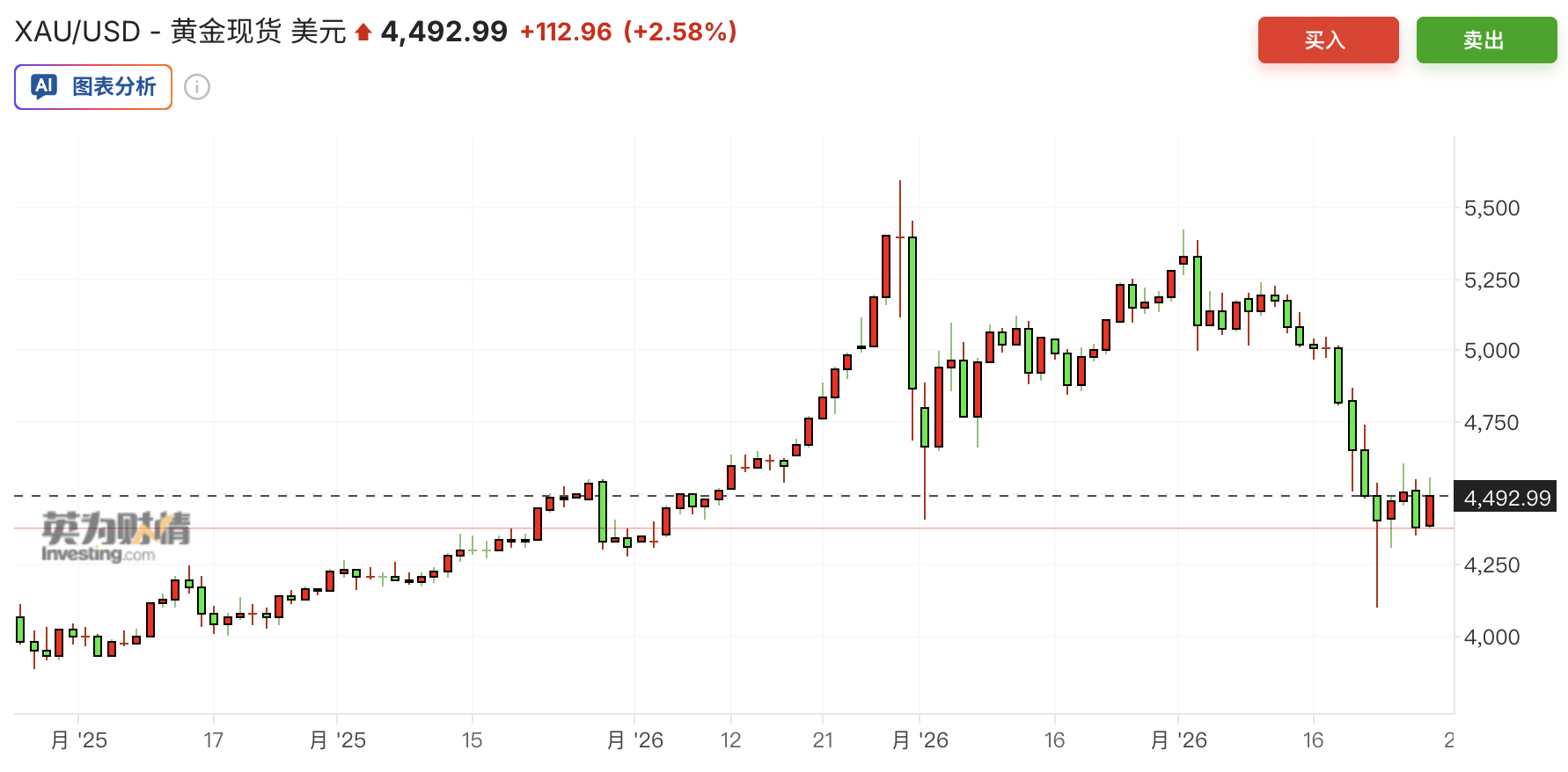 本月黄金价格累计下跌15%,从1月收盘高点算起,跌幅一度达到19%,距离通常标志熊市开始的20%警戒线仅一步之遥。不过周五市场出现变化,投资者重新买入,当天金价反弹约3%,市场情绪有所好转。