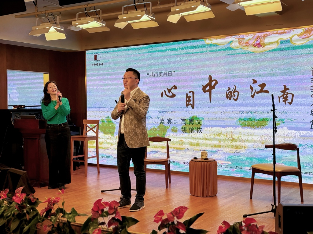 3月28日上海市民文化节“城市美育日”当天,行知读书会举办了一场评弹文化盛宴。上海评弹团团长、著名评弹表演艺术家高博文,与上海评弹团优秀青年演员姚依依,带来主题为《心目中的江南》的评弹艺术导赏活动。