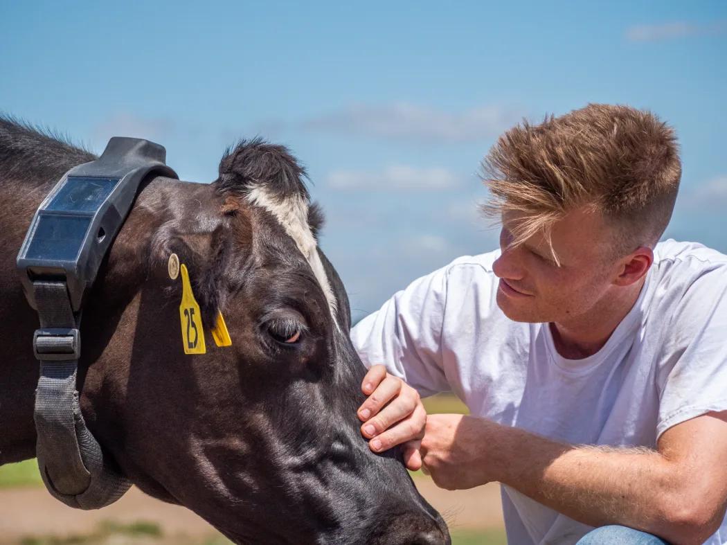 Halter研发的是一款太阳能驱动的GPS智能项圈,可佩戴于奶牛颈部。