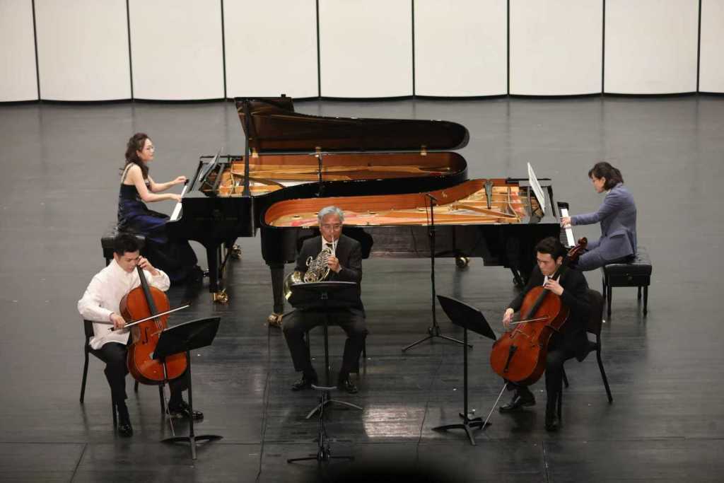 圆号演奏家韩小明、大提琴家陈卫平、耿文彬与徐持、徐奋姐妹合作,以“双钢琴+双大提琴+圆号”的形式,呈现这部作品的原始版本,填补了国内舞台演绎的空白。