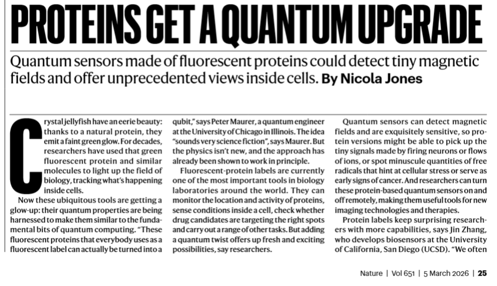 本文来自微信公众号:生态学时空,作者:复旦赵斌,原文标题:《课本里的荧光蛋白,正在开启生物学的量子时代 | 一起读顶刊-2026》