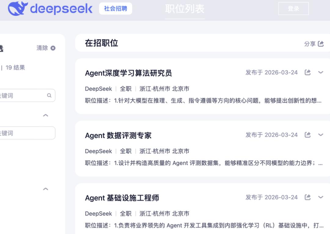 综合来看,结合DeepSeek上周一口气开放17个岗位,大力招聘Agent方向人才的情况: