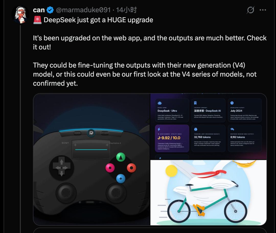 宕机前,不少用户发现DeepSeek网页版有了变化,模型能力显著提升。