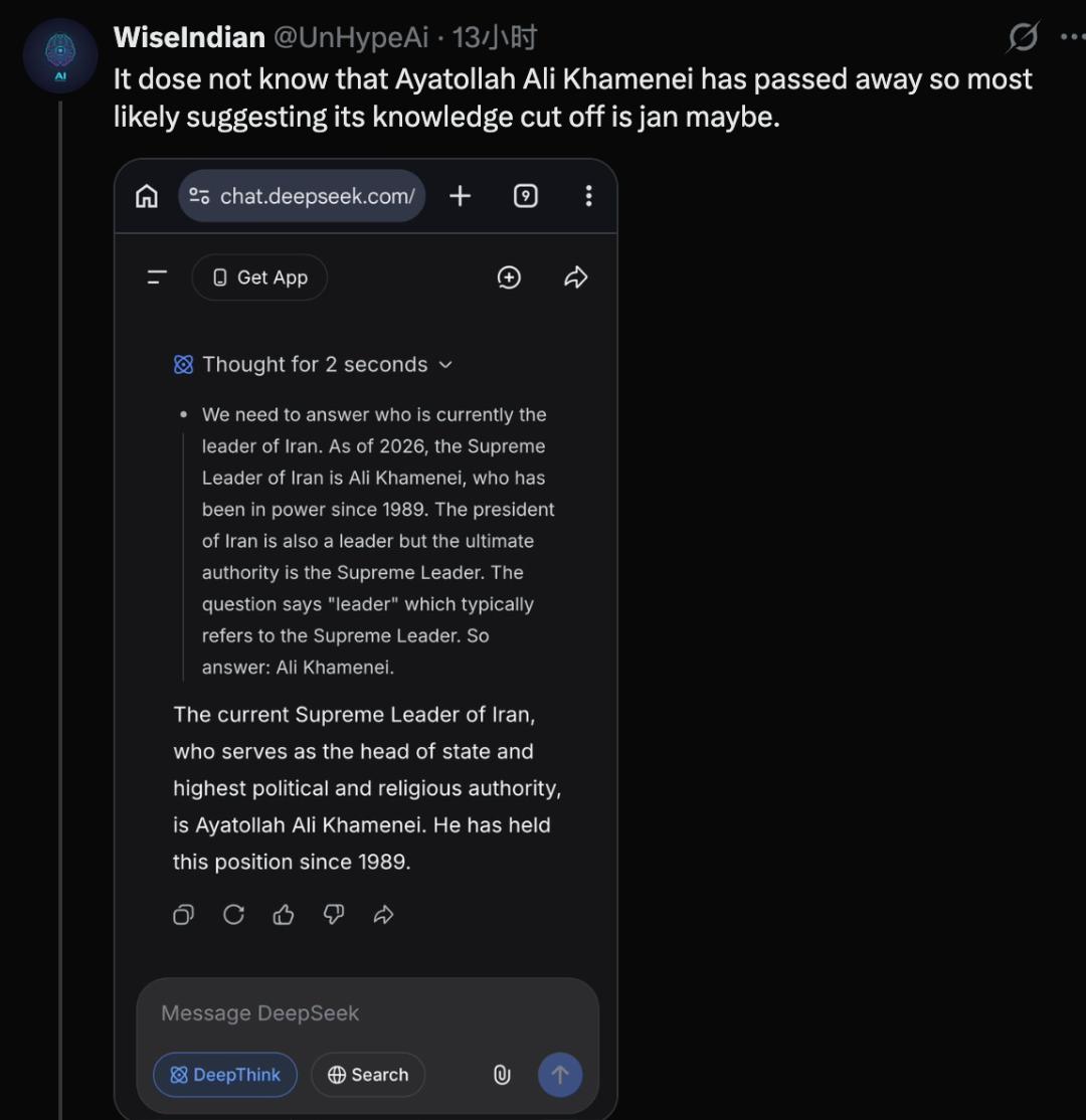 在未开启联网搜索的情况下,现在它能知晓25年美国选举结果,却不了解26年2月的大事,据此有人推测新版本的知识截止日期或许是26年1月。