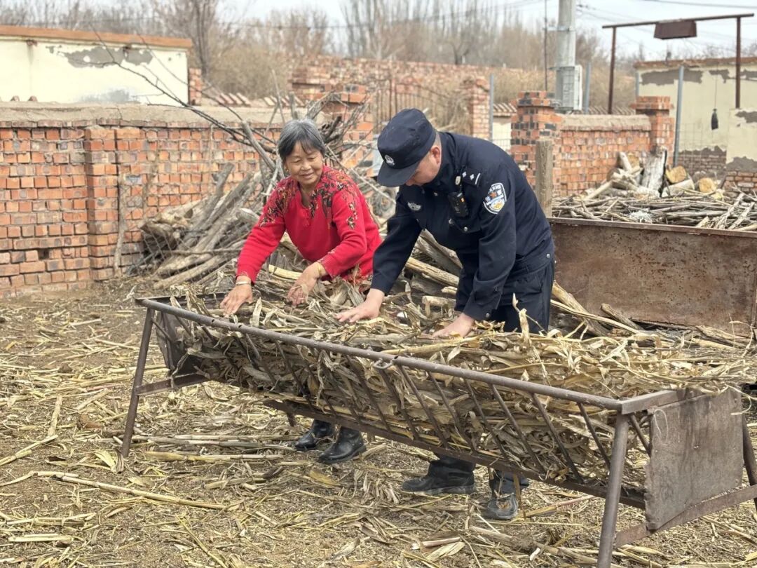 民警顺势递上秦慧荣的身份证,还帮老人把院门口的草料搬进羊圈,随后继续巡逻。