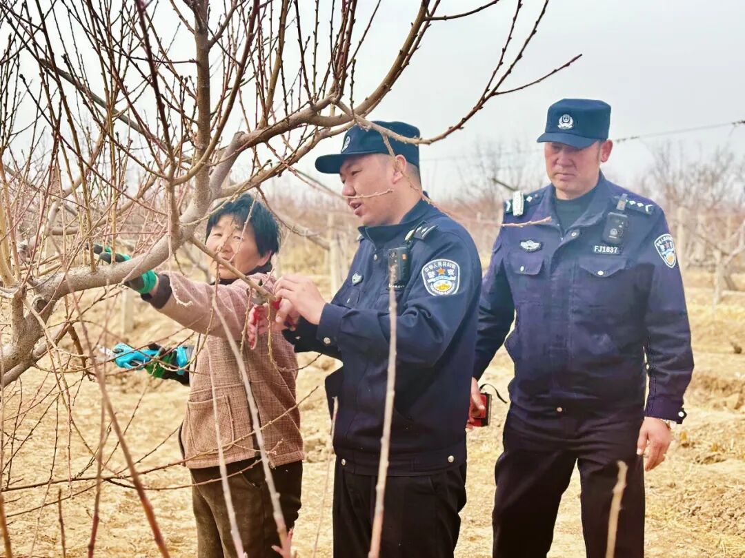 巴音陶亥镇豫蒙家庭农场里,20亩果树长势正好。民警巡逻路过时总会进去帮忙:“农场面积大,知道李春花一个人忙不过来,我们就常来松土、剪枝。”李春花感激地说,民警的帮助让她心里暖乎乎的。