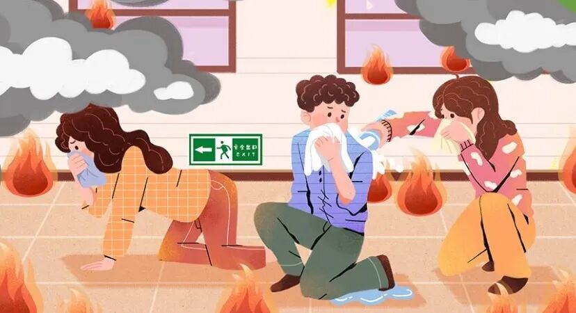 3. 安全疏散逃生。建筑发生火灾时,保持低姿从疏散楼梯逃生,条件允许时用湿毛巾捂住口鼻,不乘坐电梯,不盲目跳楼;若楼梯、楼道被烟火封住,退回房间关好门窗,报警等待救援。