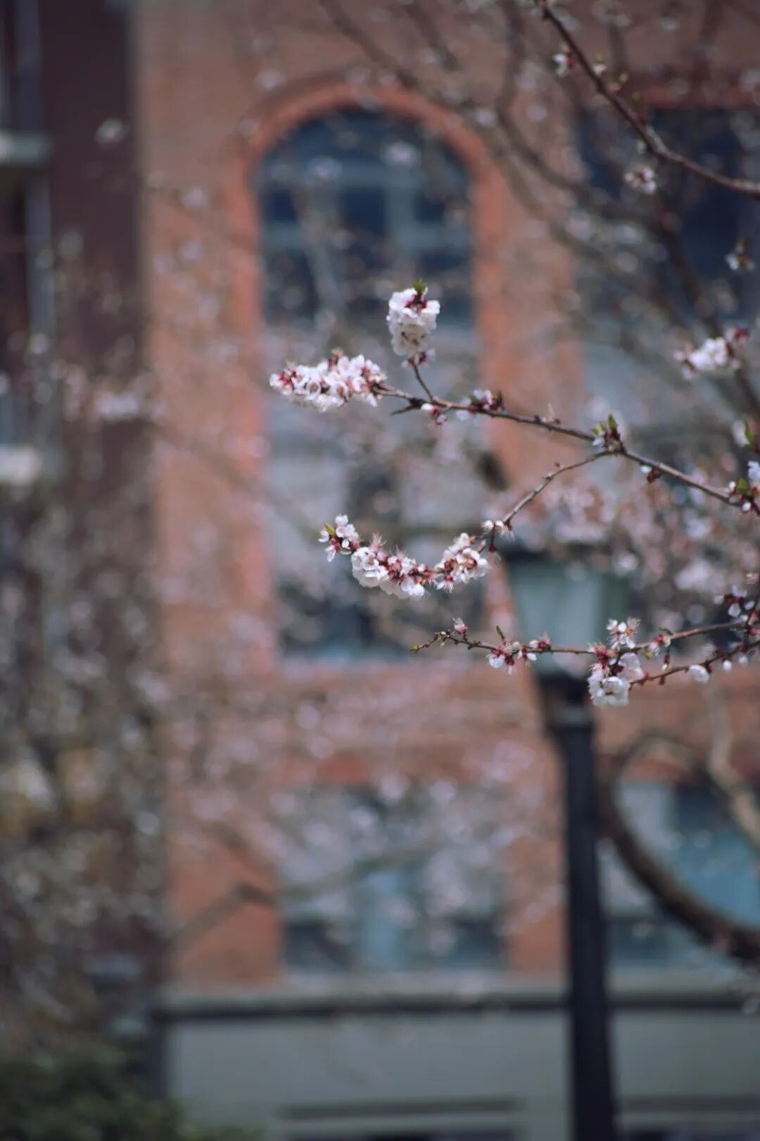 紫叶李缀着粉白小花
