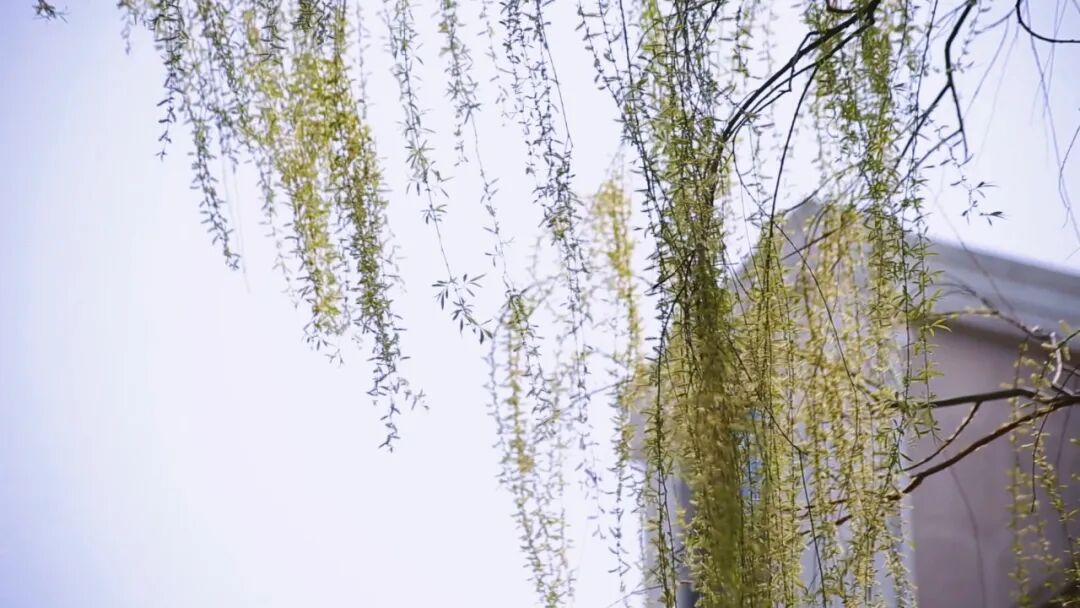 柳树垂下嫩绿的枝条