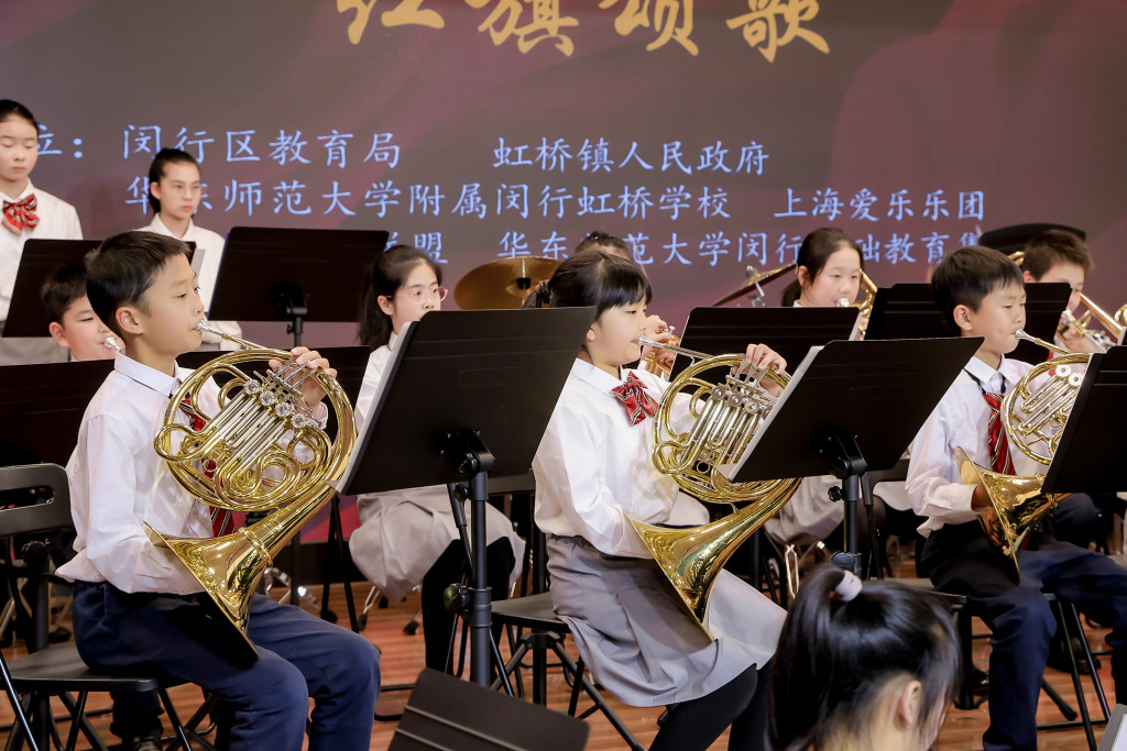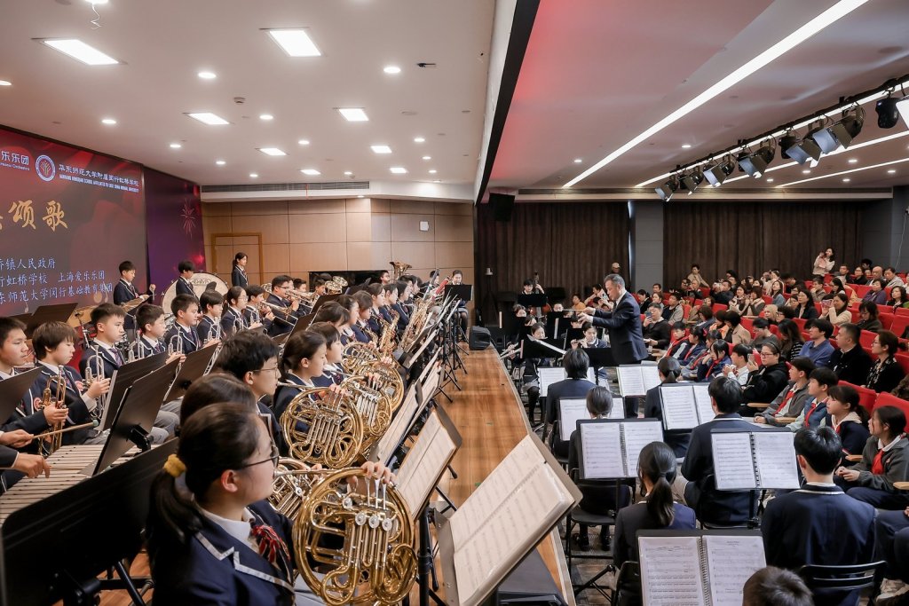 3月30日,一场名为“红旗颂歌”的公益交响音乐会在华东师范大学附属闵行虹桥学校拉开帷幕,该校“金韵”管乐团的同学们与上海爱乐乐团的专业音乐家们携手登台,共同为师生们带来了一场视听盛宴。