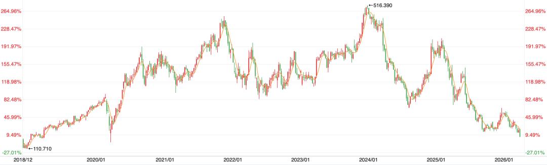 回望股价走势,lululemon从145美元涨至516美元用了5年3个月,从高点跌回145美元仅两年多,划出向下抛物线。