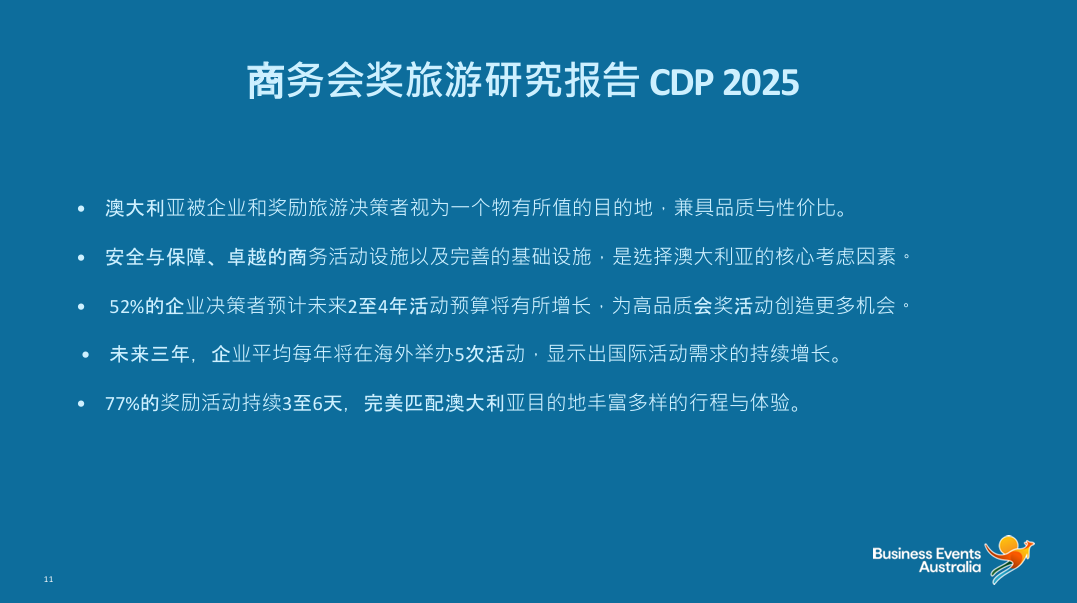 后疫情时代,全球MICE行业强势回暖,企业奖励旅游、国际商务会议、团队激励活动需求集中爆发。相较于东南亚短途会奖目的地,澳大利亚凭借得天独厚的自然资源、完善的高端会务配套与安全稳定的环境,成为中国企业中大型、高品质、长线海外会奖活动的核心选择,尤其承接了多组行业标杆级万人大型团组。澳大利亚旅游局最新年度调研覆盖企业终端决策者与专业MICE定制服务商,捕捉到当前中国及亚洲会奖市场三大核心趋势。