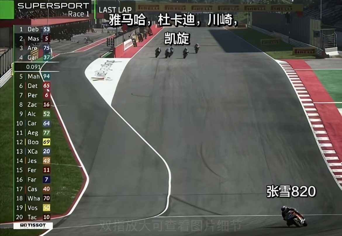 图为WSBK比赛现场截图。经济观察报记者 王雅洁制图。
