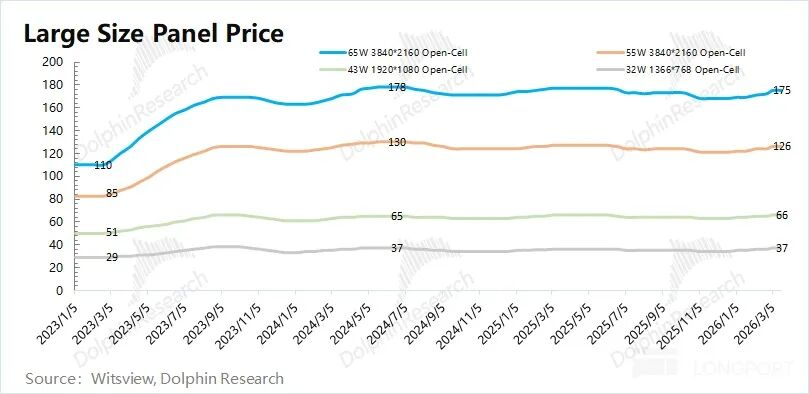 2026年2月以来,面板价格再次出现上涨迹象,但需注意的是,受国补收紧、存储涨价影响,电视、电脑等相关需求仍相对疲软。若价格回升主要依赖企业产能调节,其持续性存疑。