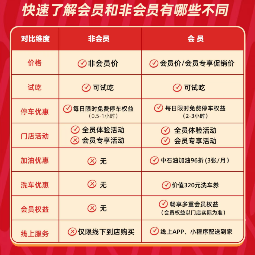 对消费者来说:选择更加自由。非会员可以随时进店体验、试吃、比价,再决定是否办卡,无需被会员费“束缚”;对于低频购物的用户,即便支付稍高的非会员价,也比被迫购买会员卡更划算。