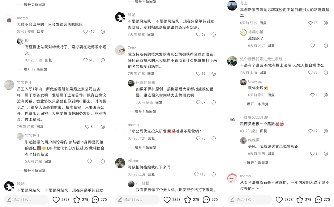 大疆打破二十年沉默,因6项专利权属纠纷,于3月23日向深圳中院起诉影石,这是其首次在国内提起此类诉讼,迅速引发全民关注并冲上热搜。影石CEO刘靖康发布长文回应,试图以“悲情叙事”博取同情,却遭遇舆论反转,网友批评其避重就轻,连小红书上也出现不少负面声音。