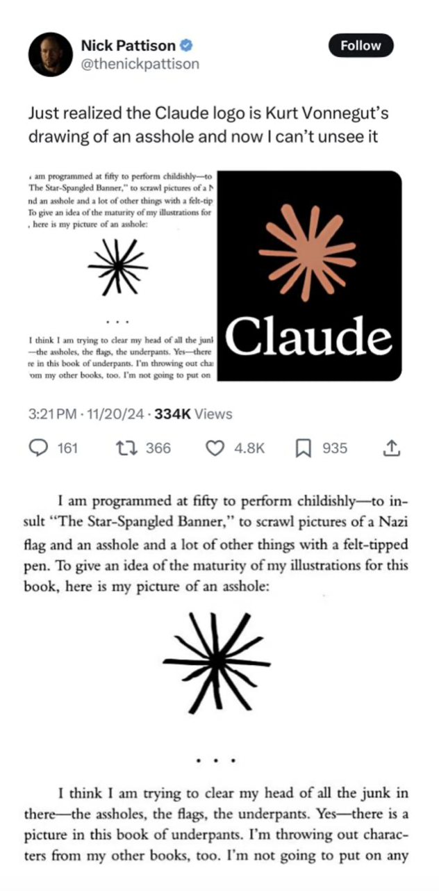 Claude Logo的灵感来源?或许是冯内古特画的“皮眼”