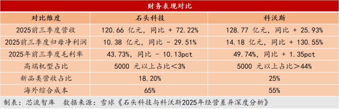 其三,战略调整期与行业竞争的矛盾。在全球化与全品类拓展的调整阶段,石头科技面临内外部压力:内部毛利率承压,外部竞争对手如科沃斯凭借“本土化闭环”战略(本土化生产、研发、渠道)降低成本,海外综合成本较石头科技低10个百分点,新品类营收占比达25%,远超石头科技的18.2%,竞争优势明显。