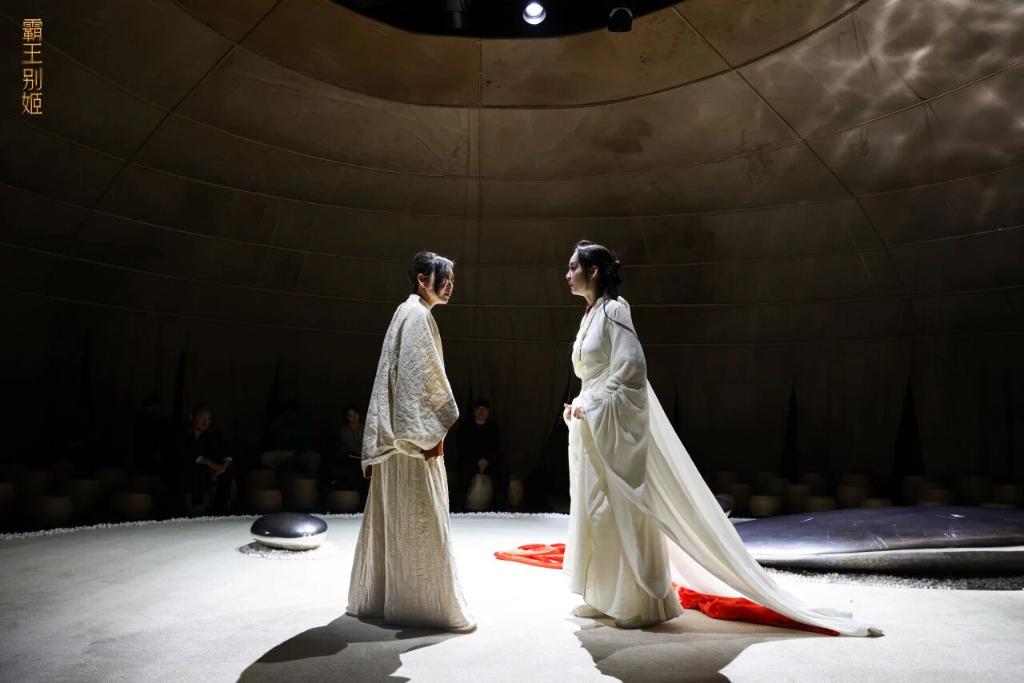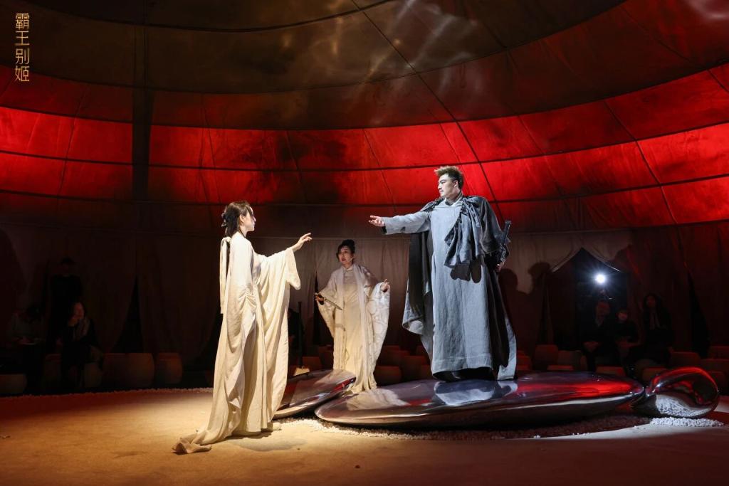 作为北京人艺继《我们的荆轲》之后排演的第二部莫言话剧作品,《霸王别姬》并未采用传统的线性叙事方式,而是以虞姬和吕雉两位女性角色的对话拉开序幕,其间穿插着她们与项羽的回忆以及各自所处的现实场景。