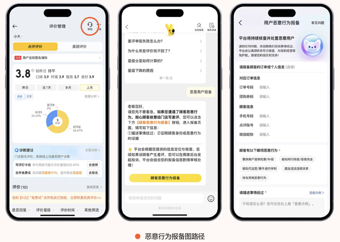 平台将评价审核防线升级为五道,引入AI辅助人工把关,严打批量生成、模板化、非真实体验评价。同时为商家提供三大工具:评价健康度诊断(提前预警风险)、异常评价拦截(屏蔽恶意评价且不计入星级)、评价沟通协商(7天内解释澄清),2025年分别覆盖超909万家商户、拦截近405万条异常评价、沟通超8.3万条评价。
