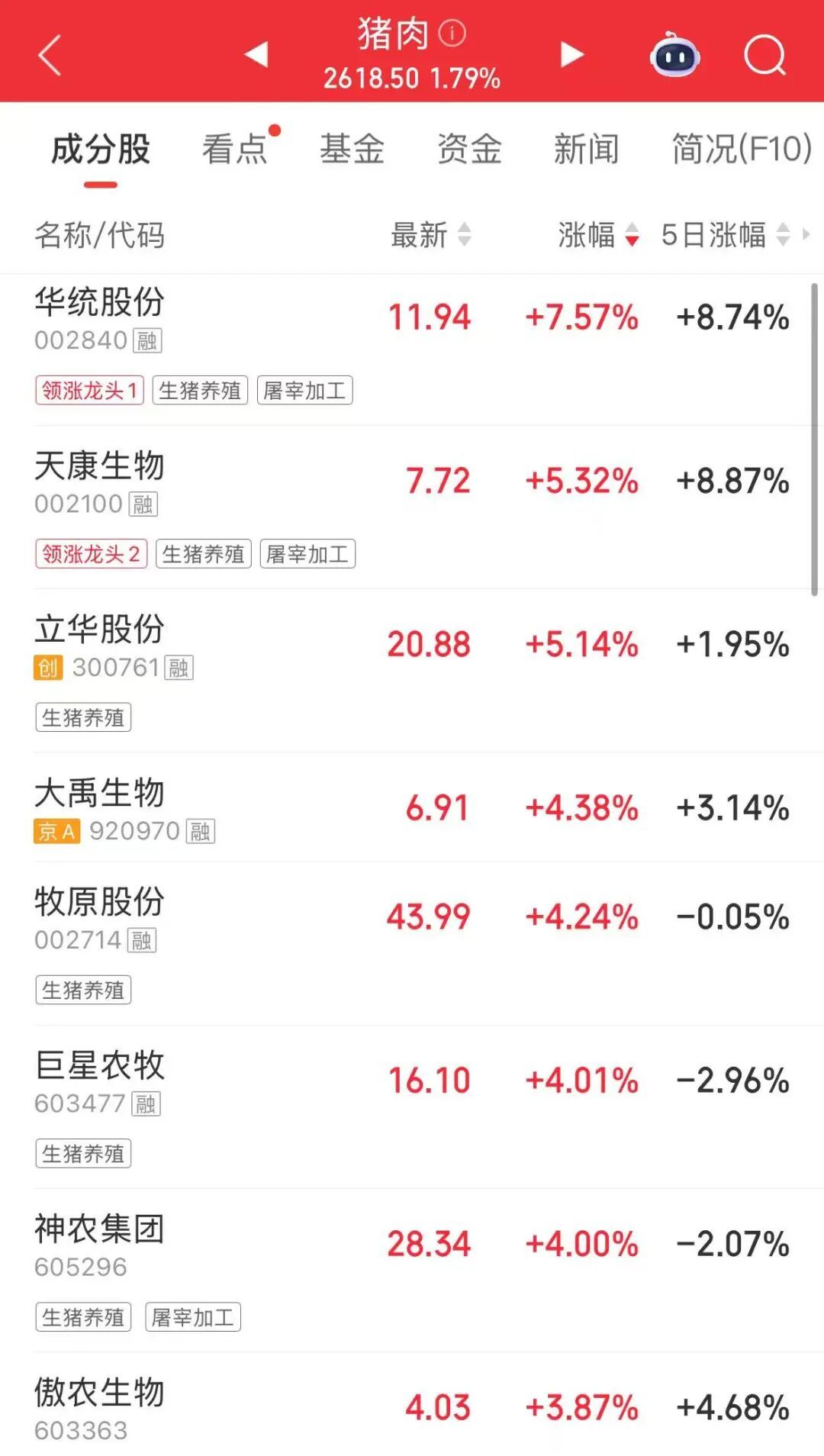 多部门启动中央储备冻猪肉收储 猪肉板块应声拉升