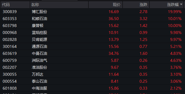 石油石化板块表现亮眼,博汇股份收获“20cm”涨停,和顺石油、康普顿等多股涨停,还有不少个股跟随上涨。