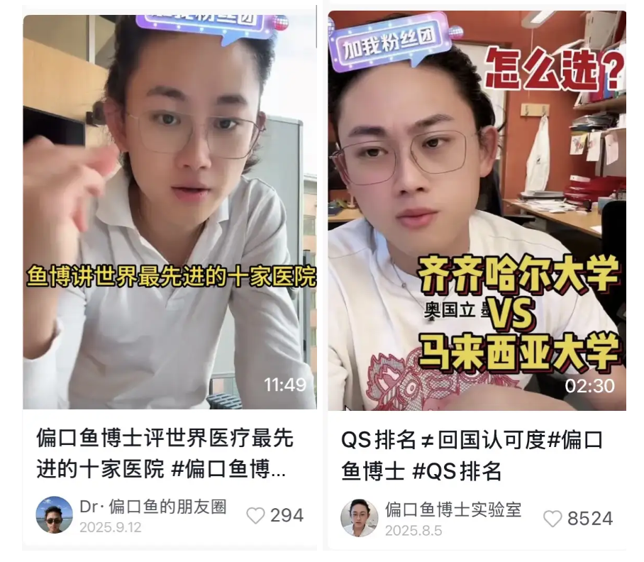 直播形式是偏口鱼博士走红的关键。爆火前,他曾在直播间当“医学张雪峰”,为想学医或刚入医学院的年轻人解答真实从业信息:规培的辛苦、科室鄙视链、三甲与基层医院的差距、学医的出路等,这些教科书和招生简章里没有的内容,让他成了信息“对齐者”。