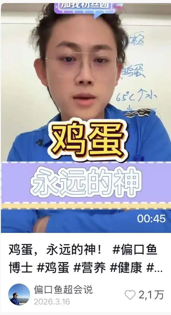 他的核心观点是“鸡蛋能解决的问题,不需要燕窝”,经典语录“蛋白质,它姓蛋”强调每天吃鸡蛋是最健康的滋补方式。在他的营养学体系里,肉蛋奶是第一梯队,蔬菜粗粮次之,而粥、汤、阿胶、燕窝等“滋补圣品”往往是浪费钱和胃的无效选择。