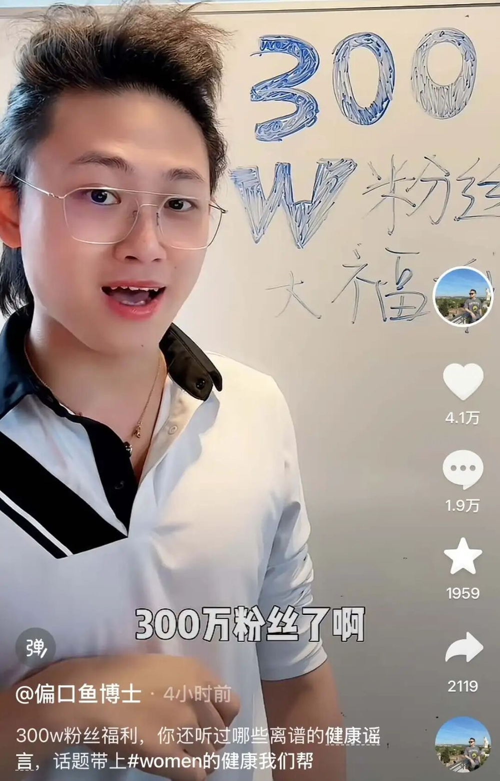 这位“硬核科普者”是偏口鱼博士,复旦大学硕士毕业后赴瑞典隆德大学读博的专业医学生。每天晚上九点,他准时在抖音直播间用东北口音科普现代医学知识,“拷打”那些看似正常却不健康的生活“小陋习”。